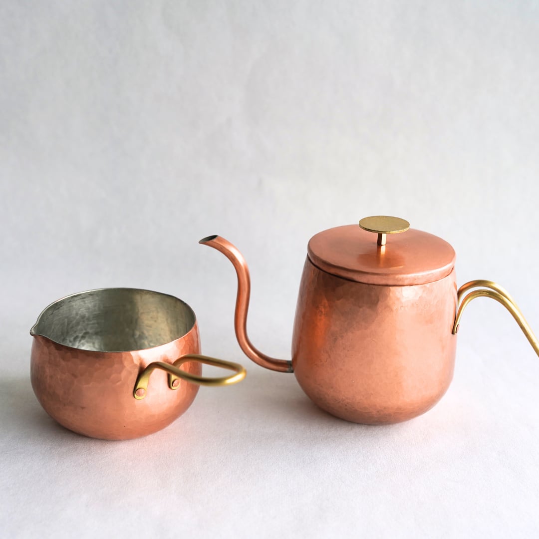 銅や金属を手打ちで叩いて形を作る「鍛金」技法を中心に、実用的で美しい台所道具や金工作品を制作。