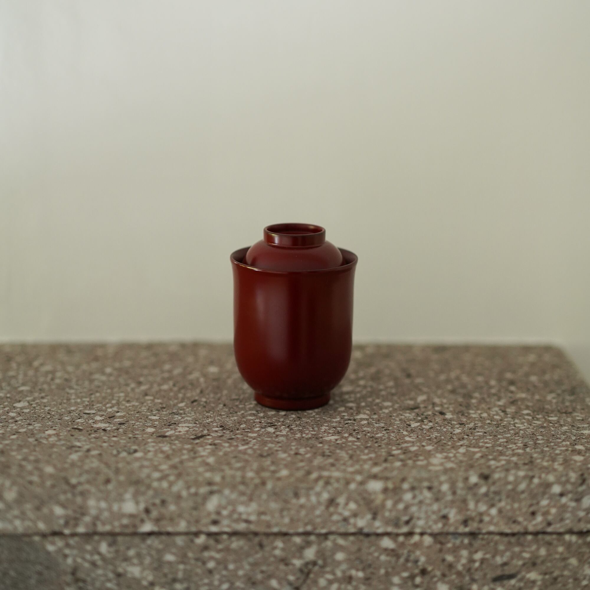 山中漆器の技術をいかした朱塗りの小吸物椀。